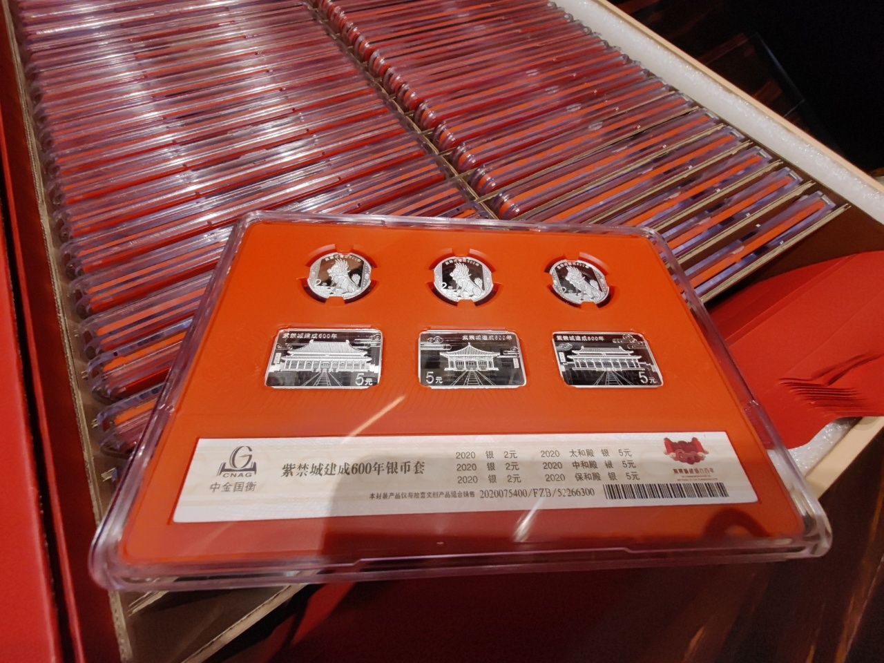 • 商品描述:《紫禁和美套装》封装纪念版采用封装纪念形式,包含2020年中国人民银行发行的紫禁城建成600年5克圆形银质纪念币3枚*50(连号),纪念币背面主图为麒麟;紫禁城建成600年15克长方形银质纪念币3枚*50(连号),纪念币背面主图分别为太和殿、中和殿、保和殿;将纪念币藏于中和殿之中,同贺紫禁城600年,传递紫禁祥瑞。