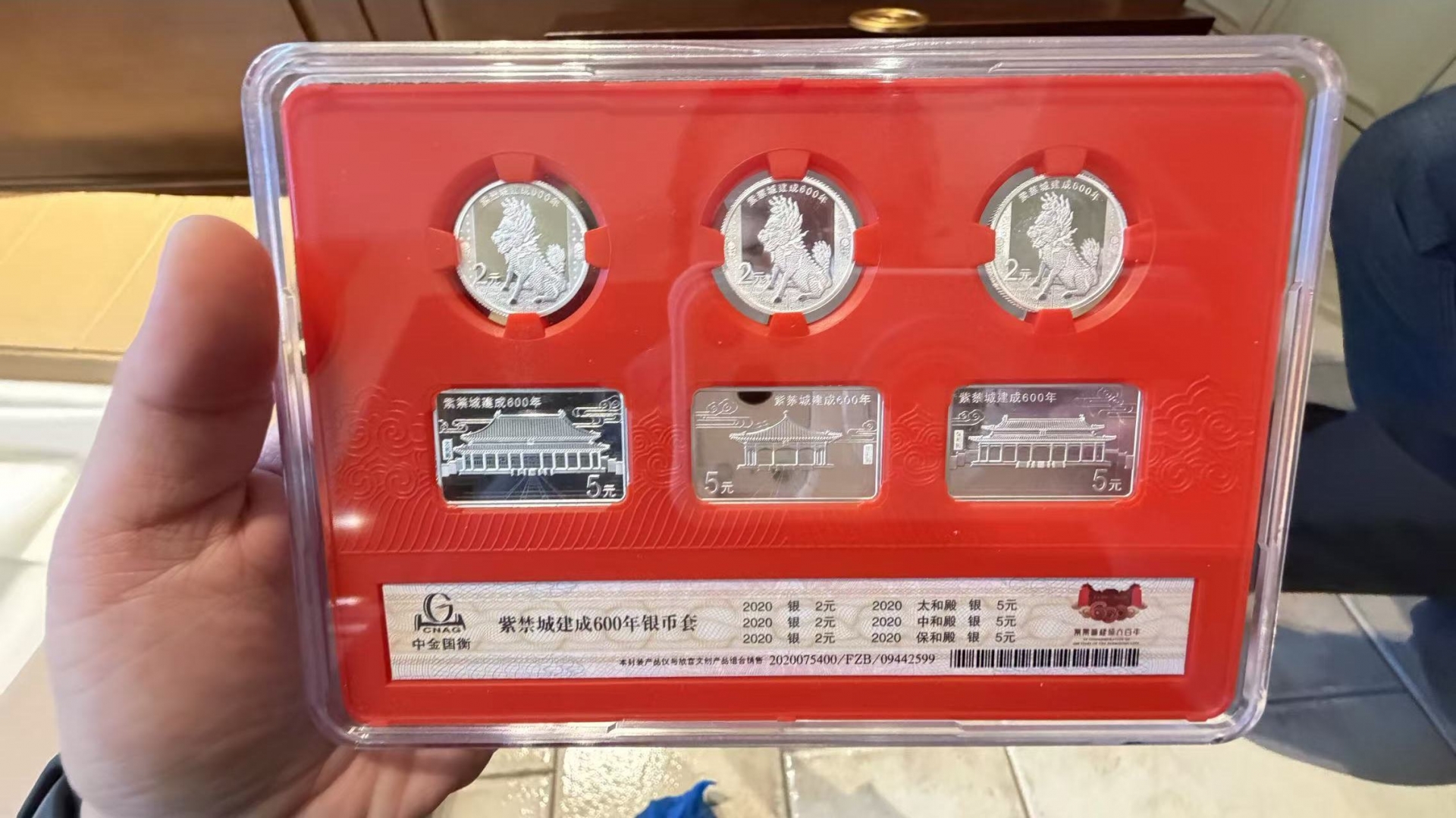 商品描述:《紫禁和美》本次套装是为铭记紫禁城建成六百年这一重要历史时刻,由中国人民银行发行的法定货币。本套组收录的15克长方形银币,独创性地以三枚连幅形式,完整再现了紫禁城核心——太和殿、中和殿、保和殿的巍峨仪态。其独特的长方形制,宛如推开一幅古典建筑画卷,将“三大殿”贯穿历史的中轴序列、宫殿重檐的恢弘结构精微刻画。5克圆形银币以慈宁门前镇守的铜麒麟为核心图案。寓意“麒麟踏瑞入朱门,福泽绵长佑家宅”,是为家族传承注入平安与德馨祝福的完美载体。 产品以贵金属为载体,再现紫禁城的乾坤气象。它不仅是一套纪念币,更是一部可